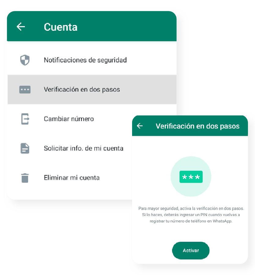 Autenticación de dos factores (2FA): Al habilitar esta función, los usuarios deben ingresar su número de teléfono y el Pin de seguridad para acceder a su cuenta de WhatsApp, lo que dificulta el acceso no autorizado y garantiza que la información de la línea siempre esté segura.