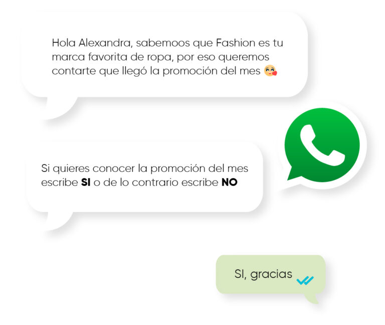 ¡Envía mensajes personalizados y promociones exclusivas y sorprende a tu cliente en fechas conmemorativas a través de WhatsApp! A través de recursos multimedia, como fotos, videos, audios y documentos, es posible enriquecer la experiencia de compra de su consumidor.