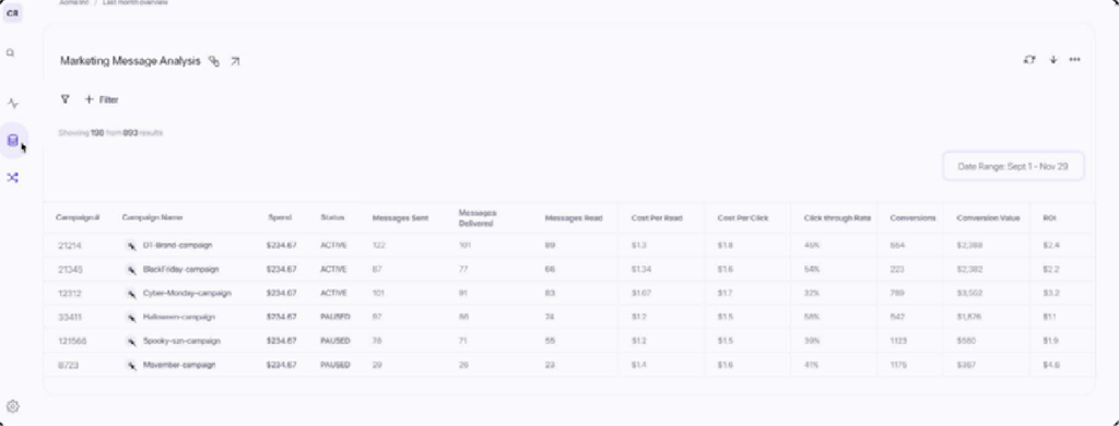 Si se utilizan otros canales para los mensajes de marketing (SMS/correo electrónico/notificaciones), sería bueno poder extraer el ROI de estos canales también para saber cómo se compara WhatsApp con estos canales.