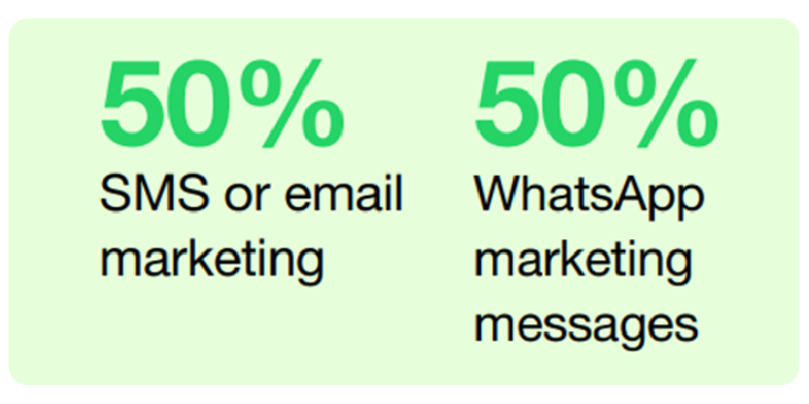 Comparación de los mensajes de marketing de WhatsApp con otros canales (Tipo B)