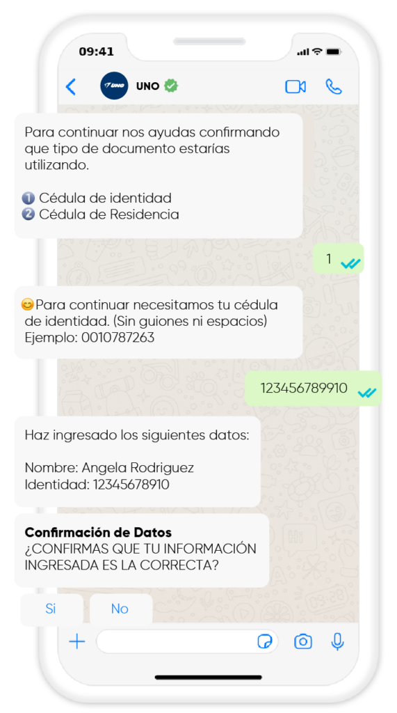 Millones de personas utilizan WhatsApp a diario y qué mejor que este canal para una promoción. Pensando en la experiencia de los usuarios, la necesidad de automatizar el proceso de inscripción y compilar la información de forma digital, UNO decide junto a Aldeamo, crear un chatbot en su línea de WhatsApp para el canje y acumulación de códigos promocionales. Esta estrategia generaría al mismo tiempo una base de datos, justo lo que la compañía tenía en mente.