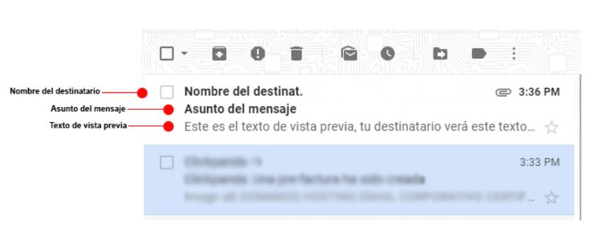 de correo. Así se muestra un texto de vista previa: