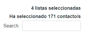 La plataforma le mostrará el número de listas seleccionadas y la cantidad de contactos dentro de todas las listas que seleccionó.