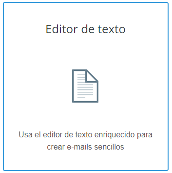 Esta funcionalidad permite que pueda crear el contenido de su correo electrónico a través de un archivo digital compuesto únicamente por texto sin formato. Para acceder al editor deberá dar clic en el siguiente recuadro: