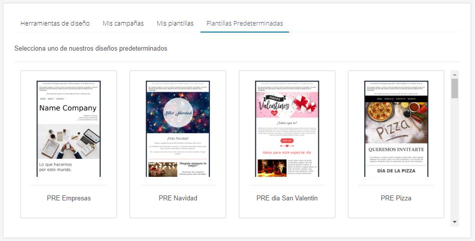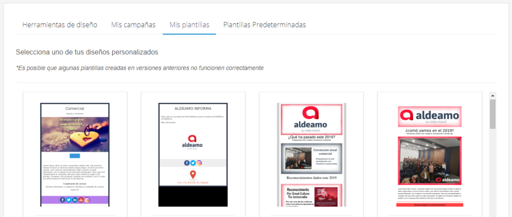 Seleccione un diseño de sus campañas anteriores (Sólo se muestran las campañas construidas en el editor Drag and Drop).