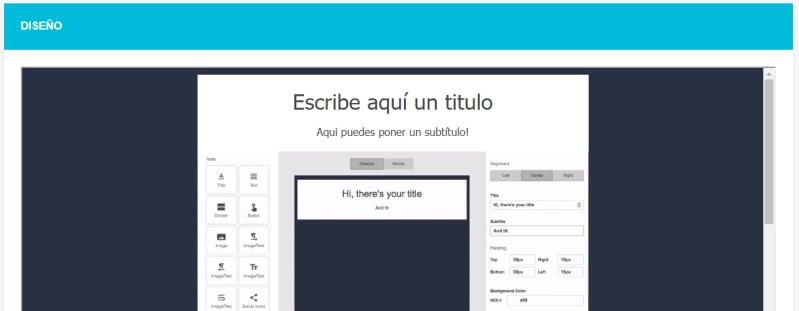 Las herramientas de diseño permiten la creación a través de un editor Drag and Drop, un Editor de texto o Pegar su código HTML.