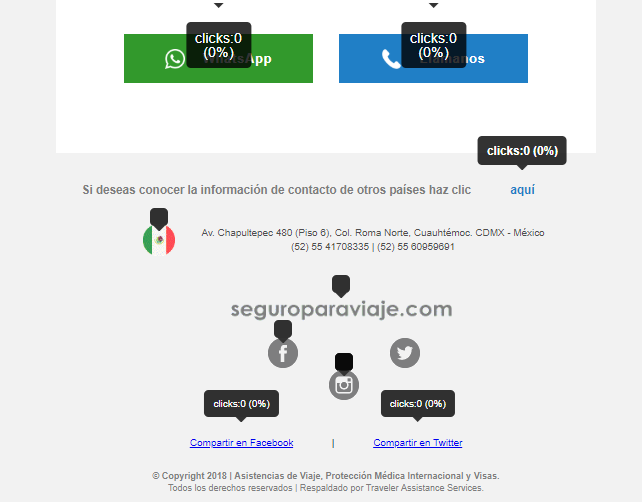 dentro del contenido, se mostrará la cantidad de clics para cada uno, el porcentaje de efectividad