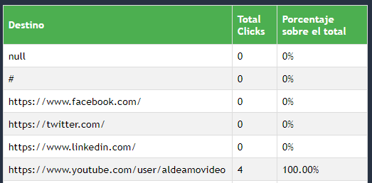 de esos clics y un reporte tabulado de los links con sus datos, de la siguiente manera: