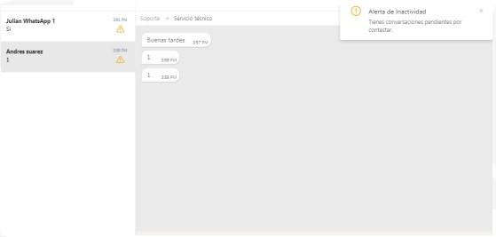 Cuando tienes conversaciones pendientes por atender, la aplicación te envía una alerta que se ve de la siguiente manera: