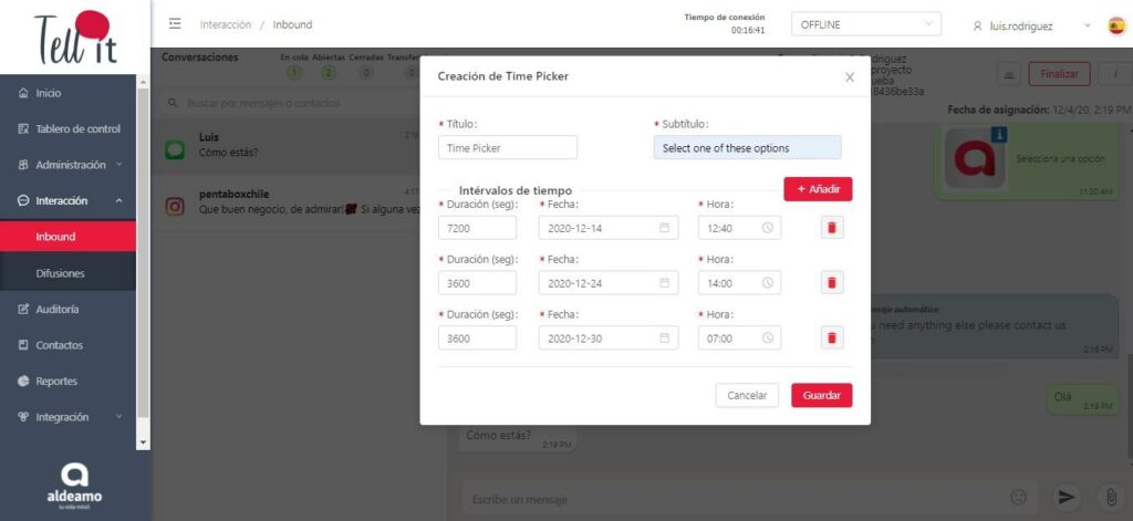 - Time Picker: El agente podrá crear un selector de horario dentro de la conversación.