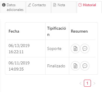 - Historial: En esta pestaña puedes observar las últimas conversaciones que haya tenido un usuario. Este número de conversaciones que se pueden visualizar se configuran en el maestro Clientes, explicado en numeral 6.2 del presente manual.