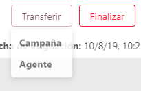 En la parte superior de la ventana de conversación encuentras el botón Transferir. Este botón estará sólo habilitado en caso de tener 2 o más Campañas.