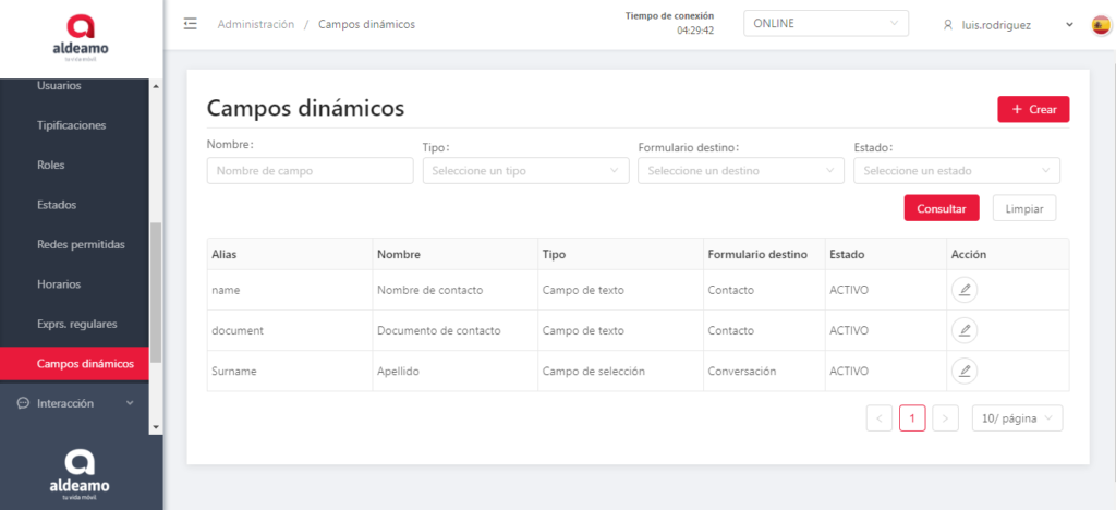 puedes crear los Campos dinámicos que tendrán asociados los contactos o las conversaciones palabras o número de tarjeta de crédito a los agentes que atienden las conversaciones.