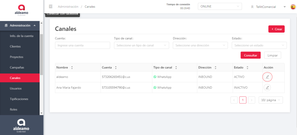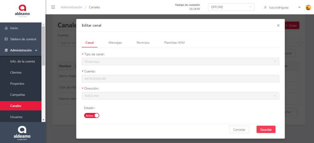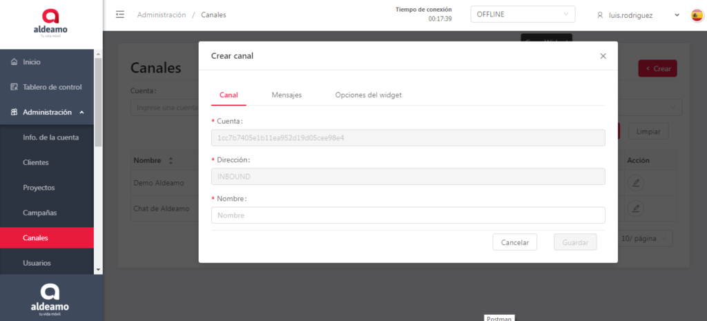 Dirección: Te informa que el canal creado es Inbound.