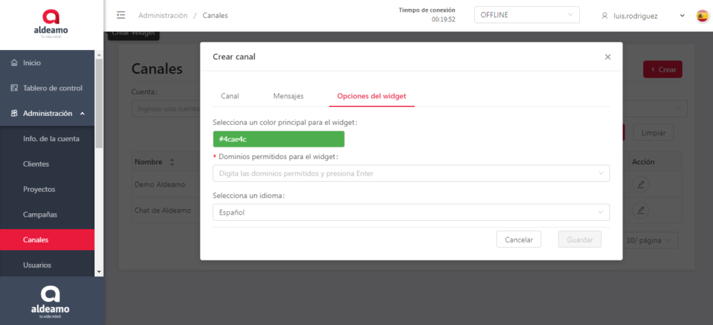 - Dominios permitidos para el widget: Serán los dominios en los que se podrá configurar tu canal LiveChat.