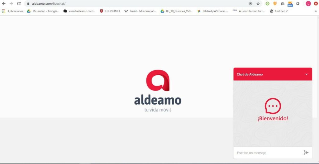 Para tener una referencia de la apariencia de tu canal LiveChat, te damos un ejemplo de un canal configurado por Aldeamo: