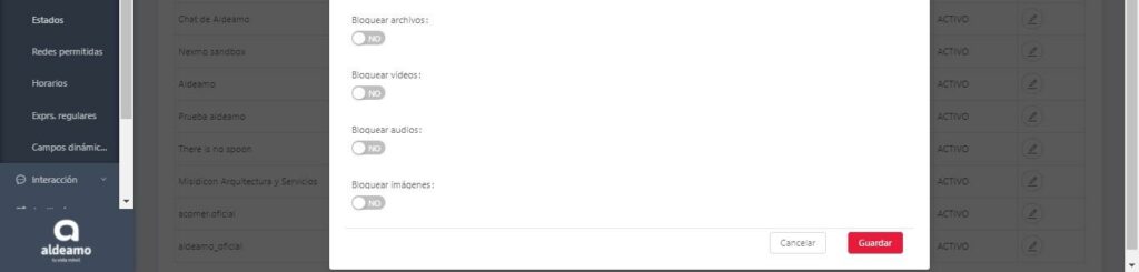 - Bloquear audios: Bloquea la entrada de audios que envíen usuario a tus agentes.