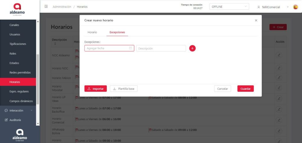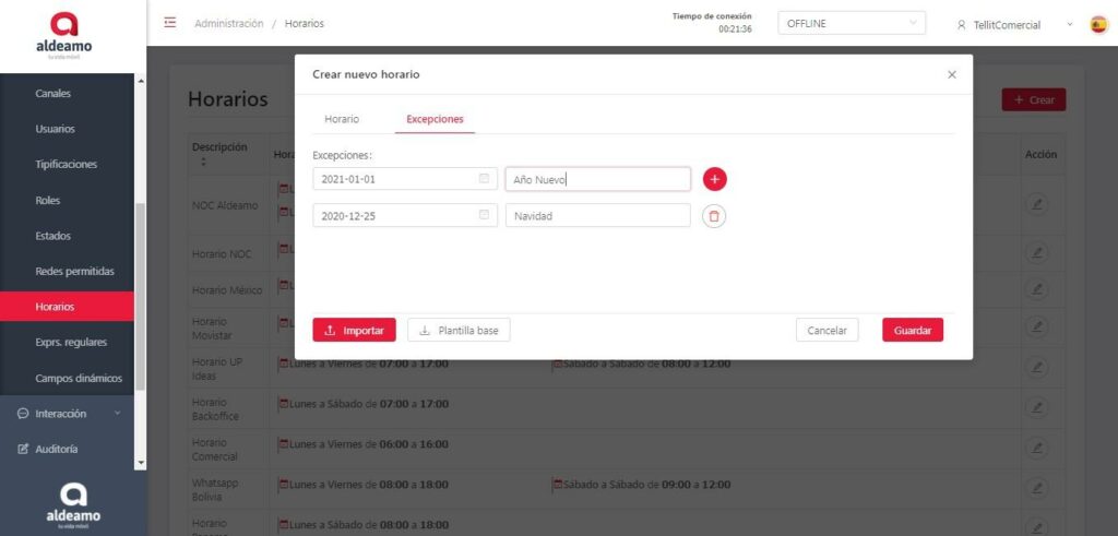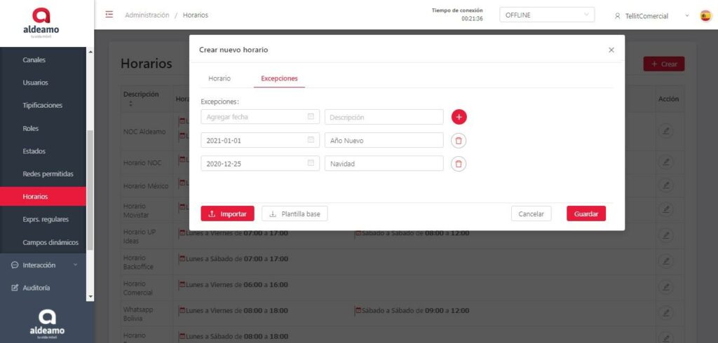 • Agregar fecha: Es el día en el que no trabajan los agentes/usuarios.