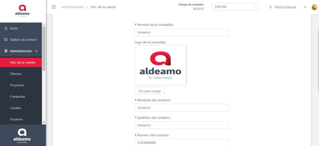 El logo de la compañía que cargues en esta opción es netamente para visualización en plataforma, si quieres que este mismo logo sea el que te aparece en la aplicación debes suministrarlo en los requerimientos de configuración. Si la configuración de la línea la realizaste por código QR puedes