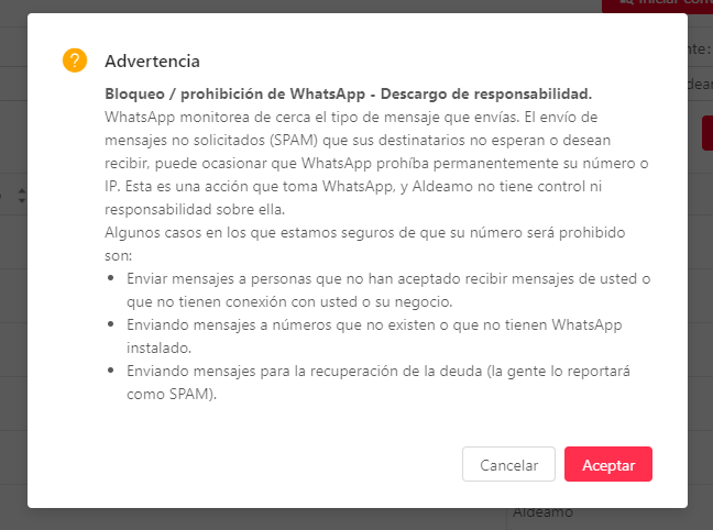 *Esta advertencia no aplica para líneas oficiales de WhatsApp Business API.