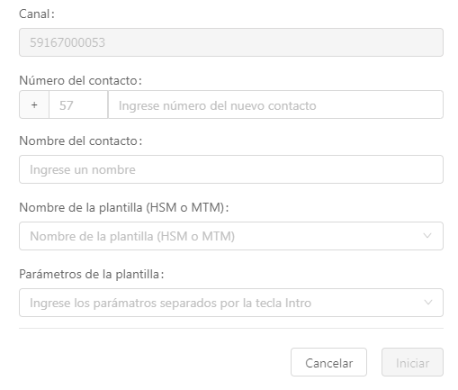 - Canal: Canal bajo el cual será atendida la conversación, no editable.