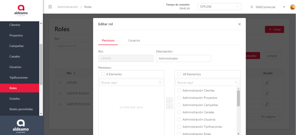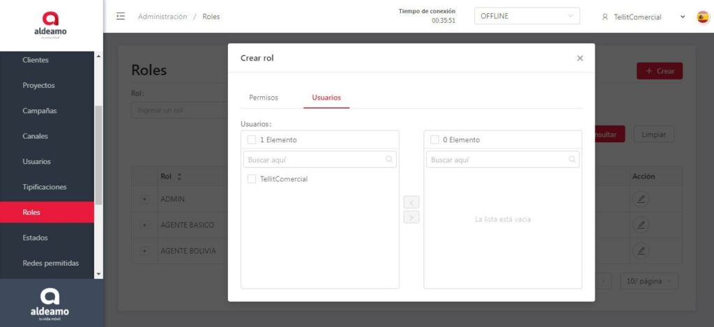 Después de editar el nombre del Rol, puedes pasar a la pestaña de Usuarios para seleccionar los agentes que van a pertenecer al rol creado.
