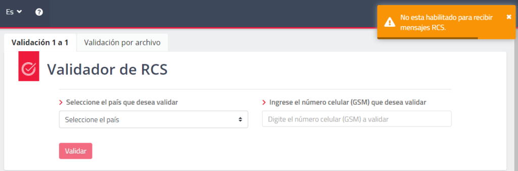 Podrá ingresar el país y número de celular que desea validar. En la parte superior derecha, encontrará una notificación con el resultado.