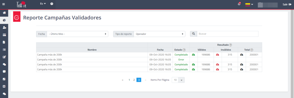 En el módulo de Reportes de Tellit podrá encontrar los números validados diferenciados entre Campañas y Detallados.