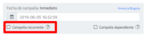- Campañas Recurrentes: Configure campañas que se repitan periódicamente a través de una Campaña Recurrente, en el paso de Información de Campaña, seleccione la opción Campaña Recurrente en el cuadro de programación de la campaña: