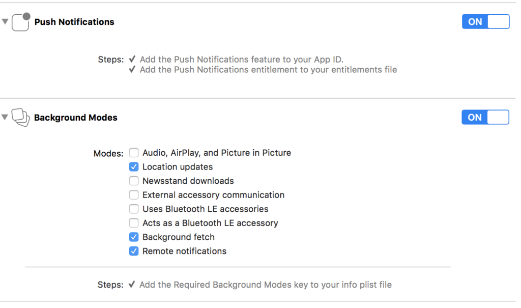 - Push Notifications en Background Modes