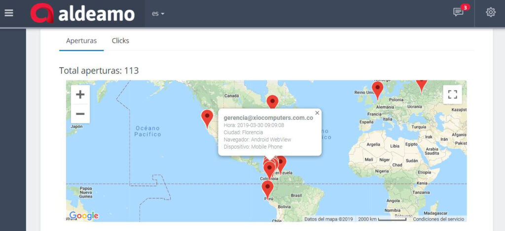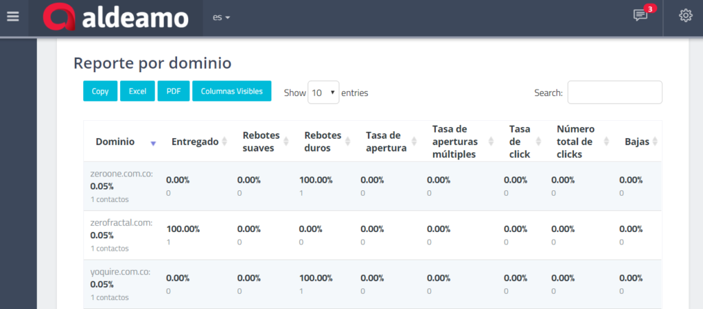 El proceso comienza con la creación de una base de datos en un archivo de Excel delimitado por comas de tipo CSV. El archivo debe tener relacionadas las cuentas de correo electrónico en una de las columnas y puede llevar variables personalizadas preestablecidas para cada una de las cuentas. Como resultados, se obtienen bases dentro de la aplicación web ofrecida por Aldeamo, definidas para el usuario en el que son cargadas.