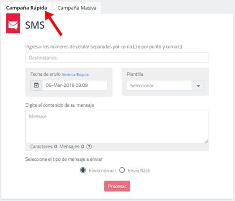 Una vez ingresados los números celulares, seleccionada la fecha de salida de la campaña, y digitado el texto del mensaje, de clic en “Procesar” y se mostrará el resumen del envío: