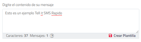 Tenga en cuenta que en la parte inferior se informará la cantidad de caracteres y mensajes consumidos por el texto. Recuerde que hasta 160 caracteres se cuenta un mensaje de texto, si el texto es de 161 en adelante, cada mensaje se contabilizará cada 153 caracteres para efectos de concatenación 3-4 (envío de un solo bloque de texto al usuario final).