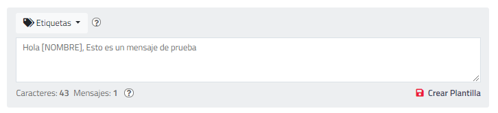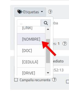 Etiquetas, contiene los encabezados de las columnas del archivo de contactos cargado en la plataforma, seleccione el encabezado para personalizar el SMS.