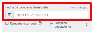 Fecha de Campaña: Seleccione en el calendario la fecha y hora de salida de la campaña, si no se modifica, el envío es inmediato.