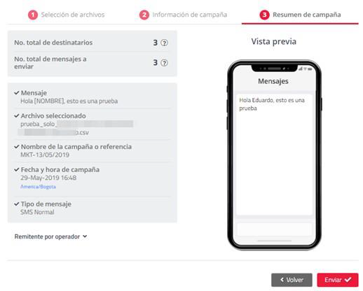 Los envíos masivos están diseñados para realizarse en tres pasos: