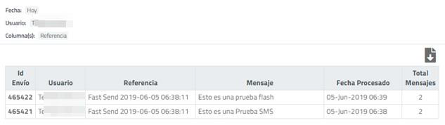 Se cuentan con filtros de campañas para el filtrado por rango de fechas, usuario que generó la petición si usted cuenta con permisos de visualizador de reportes, Referencia o nombre de campaña, tipo de mensajes y estados de los mismos.
