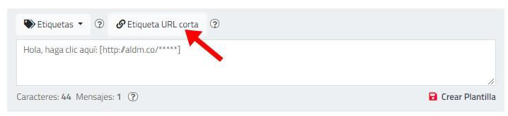 Al continuar, en el paso 2 de configuración del mensaje, recuerde hacer clic sobre la etiqueta URL corta para poder usar la enmascarada de la plataforma que almacena información de clics para reportes: